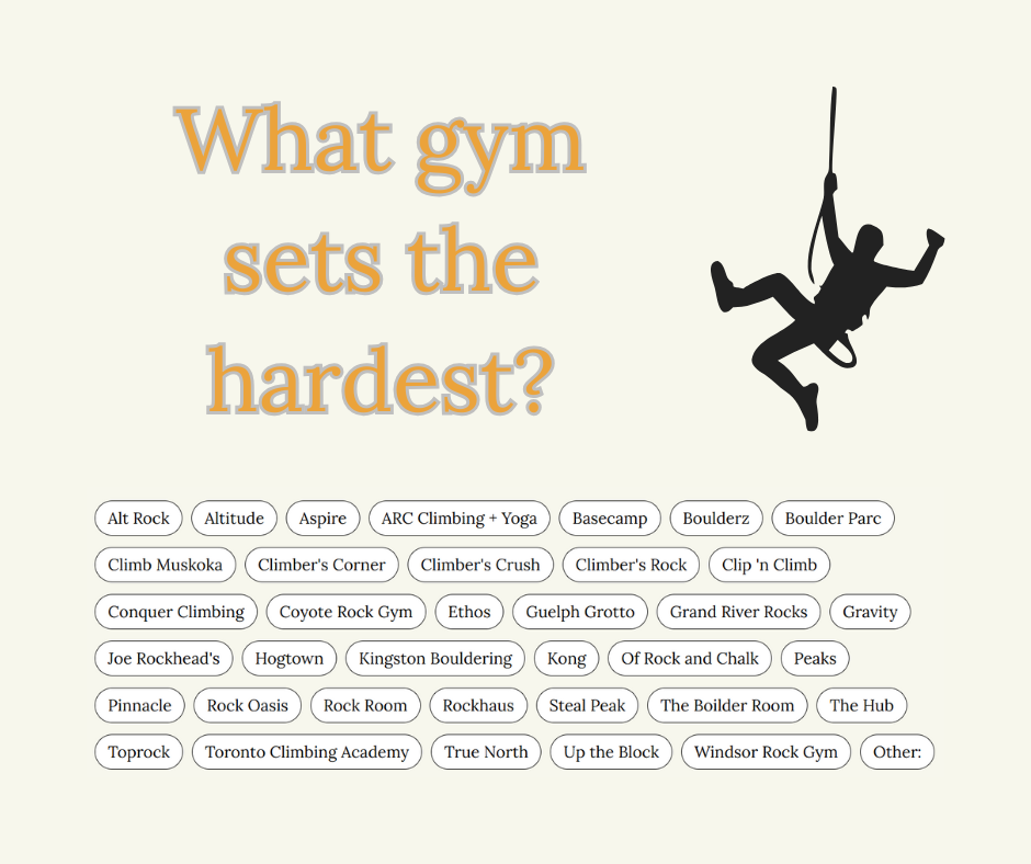 When we are not busy planning courses and developing new features for the site, we occasionally create climbing games that we find fun and unique. Take your best guesses at the games and quizzes below!